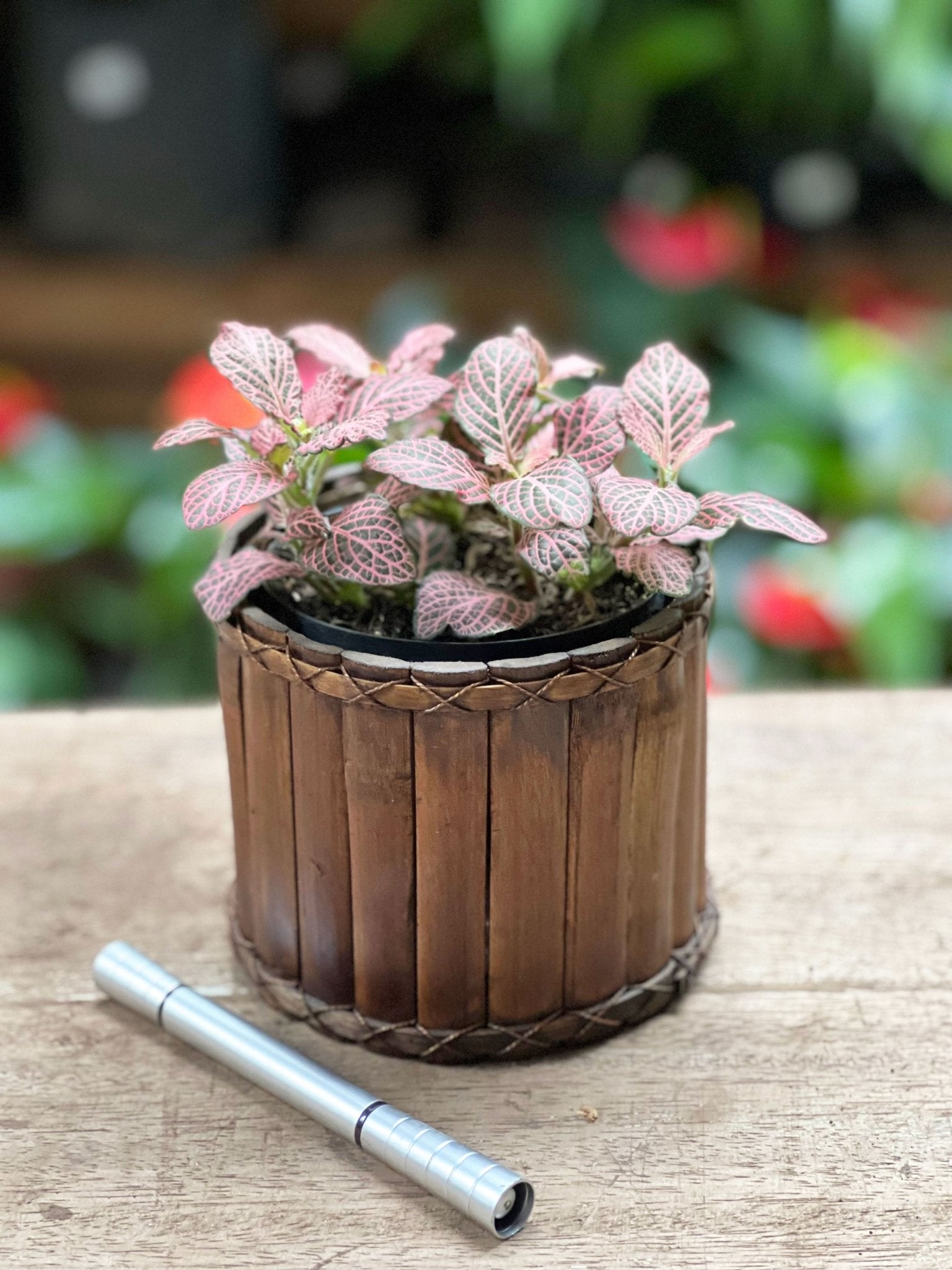¡Lleva la selva tropical a tu escritorio! La Fitonia es famosa por sus hojas vibrantes con nervaduras blancas que parecen tejidas a mano. Es la planta perfecta para quienes buscan un toque exótico en espacios compactos o prefieren crear microclimas en terrarios.